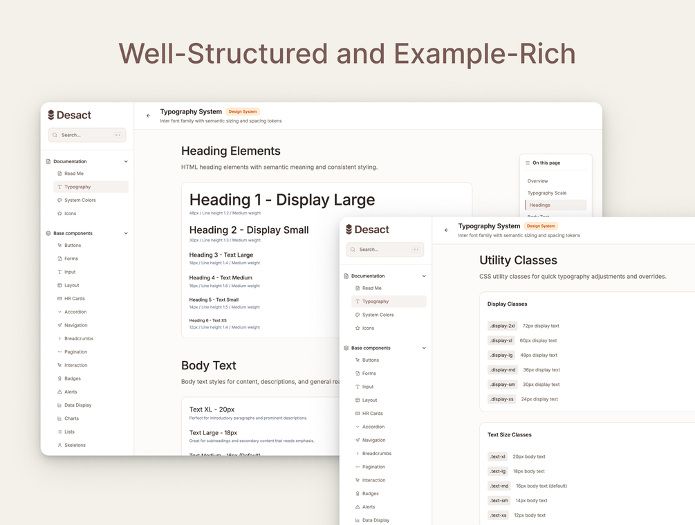 Desact is a meticulously crafted design system tailored for building beautiful, consistent, and efficient enterprise interfaces—especially HR platforms, admin dashboards, and data-rich B2B tools. It combines design precision, accessibility, and developer-ready components into a single seamless experience.